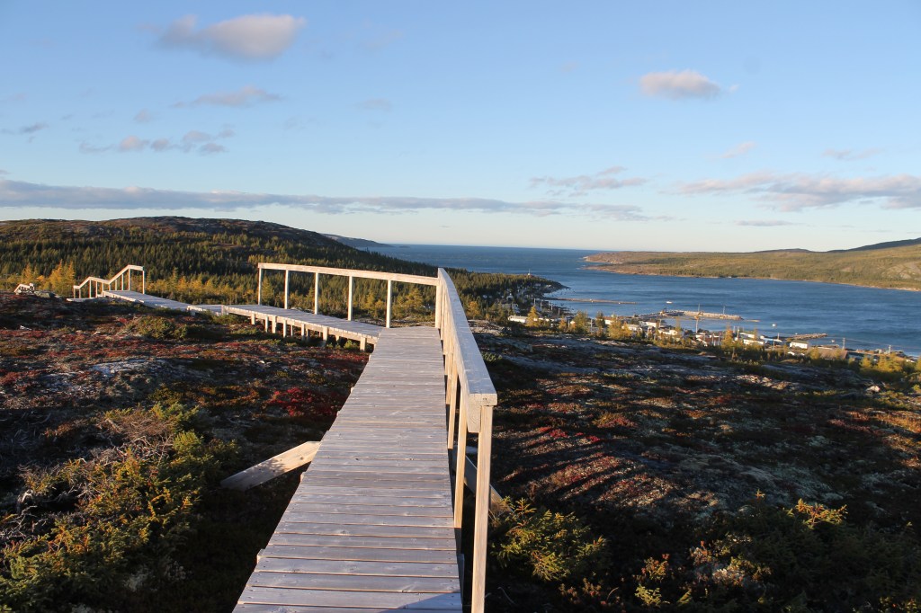 Harbour mouth empties into Makkovik Bay Boardwalk across the barren the southern end of townPath leading to the graveyard from the churchPoet’s Path Upper section of townRanger Bight, a favorite spot in summer Twin otter landing on the airstripHarvest festival at Makkovik Moravian ChurchVisiting the White Elephant Museum